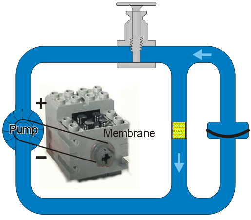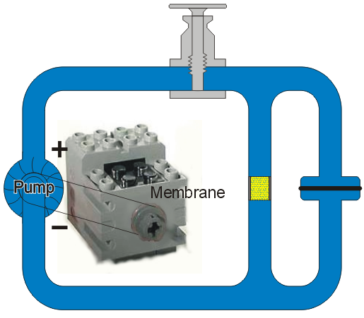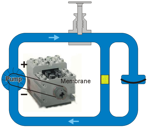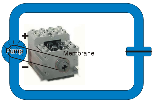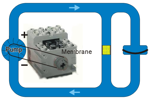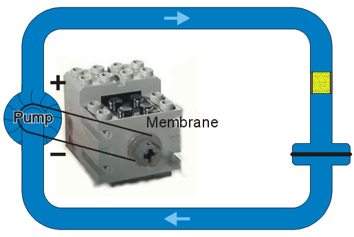 Figure 1. A pump in a closed loop with a membrane blocking the flow.