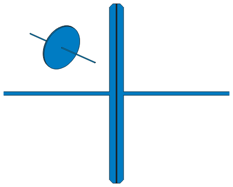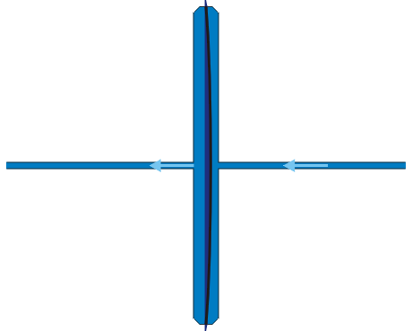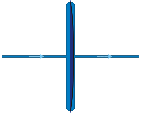 You may notice that the membranes in the previous figures are not very large—only a very small volume of water could be stored by them. Electric capacitors, however, hold significantly more charge. To demonstrate how this is done, consider a stretching the radius of the pipe along a small section and a semi-rigid membrane is made to fit in the centre of this disk as is shown in Figure 9.