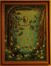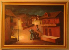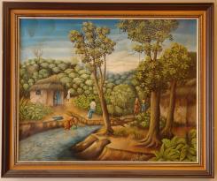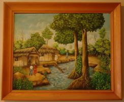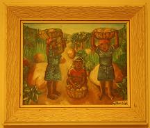 [an error occurred while processing this directive] Skip to the content of the web site.These are some of my paintings from Haiti. Please click to enlarge. Unfortunately, all of the paintings are anywhere from slightly damaged to seriously damaged (what appears to be a coffee spill in one case, cracks in others, and just poor handling for the rest), and this probably detracts from any value they have monetarily (c'est la vie), but fortunately, they are very beautiful and give my apartment a nice theme.