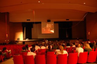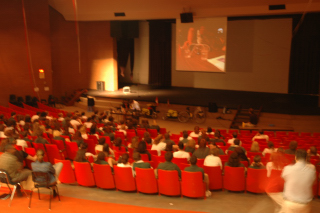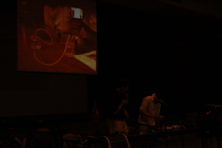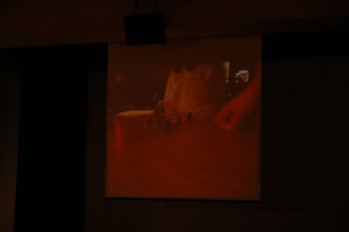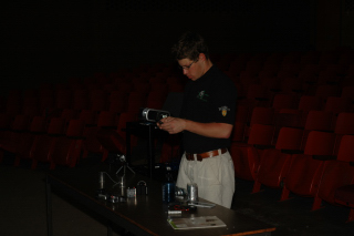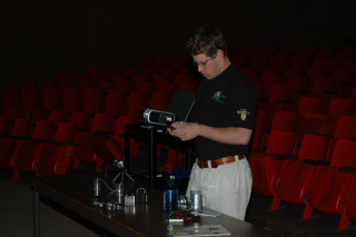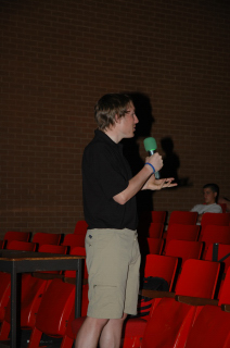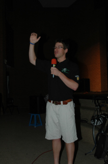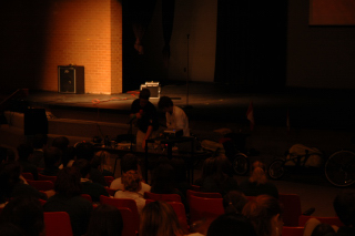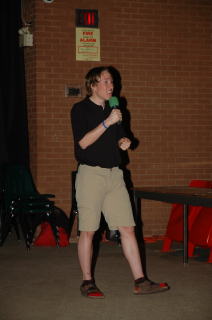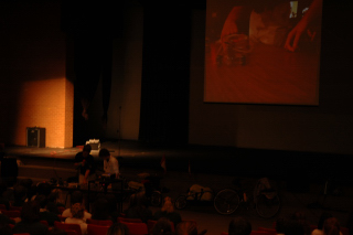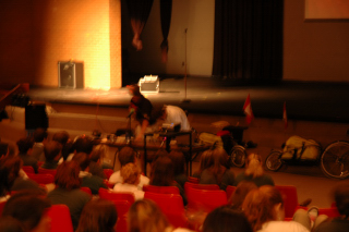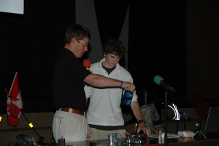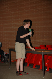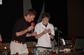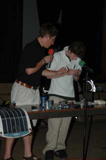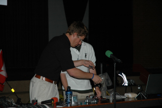 Getting some help from an audience member.