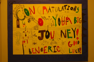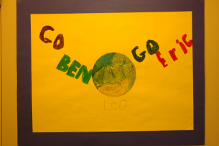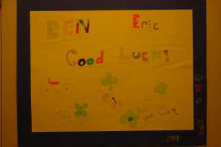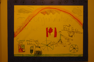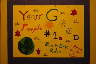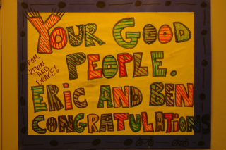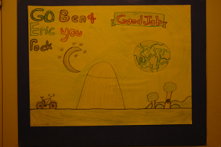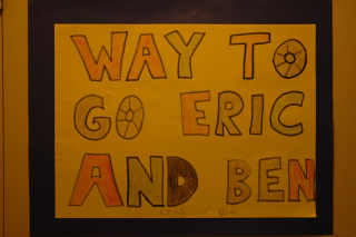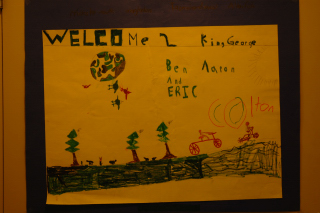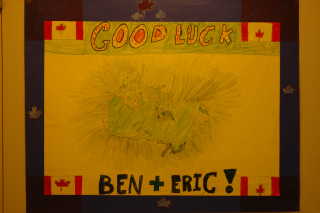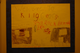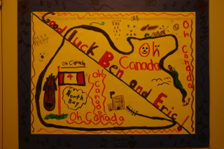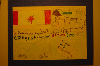 The students at King George prepared an entire collection of posters to welcome Eric and Ben. They're all good, though this anonymous one is my favourite.