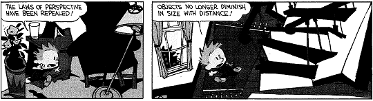 However, once an artist understands the concepts and rules and has spent sufficient time mastering then, the artist is also able to understand when those rules must be followed and when they may be broken. For example, consider the Calvin and Hobbes strip from Bill Watterson (distributed by Universal Press Syndicate) shown in Figure 4.