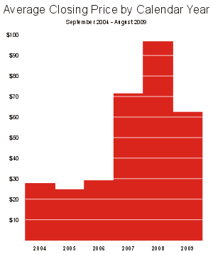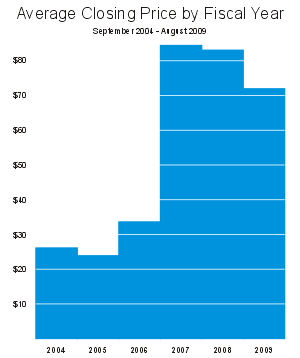 Figure 11. Closing price averaged over the Canadian fiscal year.