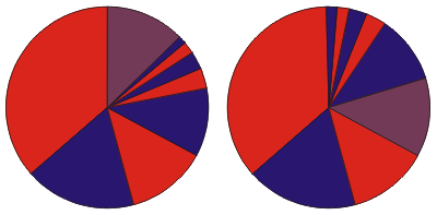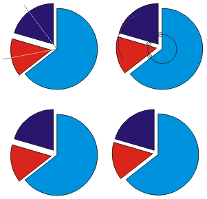 Placing any text on the pie slices disrupts the image and makes comparisons more difficult. Figure 13 demonstrates how in some cases it is impossible to annotate slices uniformly which leads to a mixture of conventions.