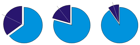 A hairline border between pie slices helps distinguish the slices. A thick border, as shown in Figure 10, has the same effect as the exploded pie chart, it diminishes the area of the smaller slices, but also distracts the audience from the representation.