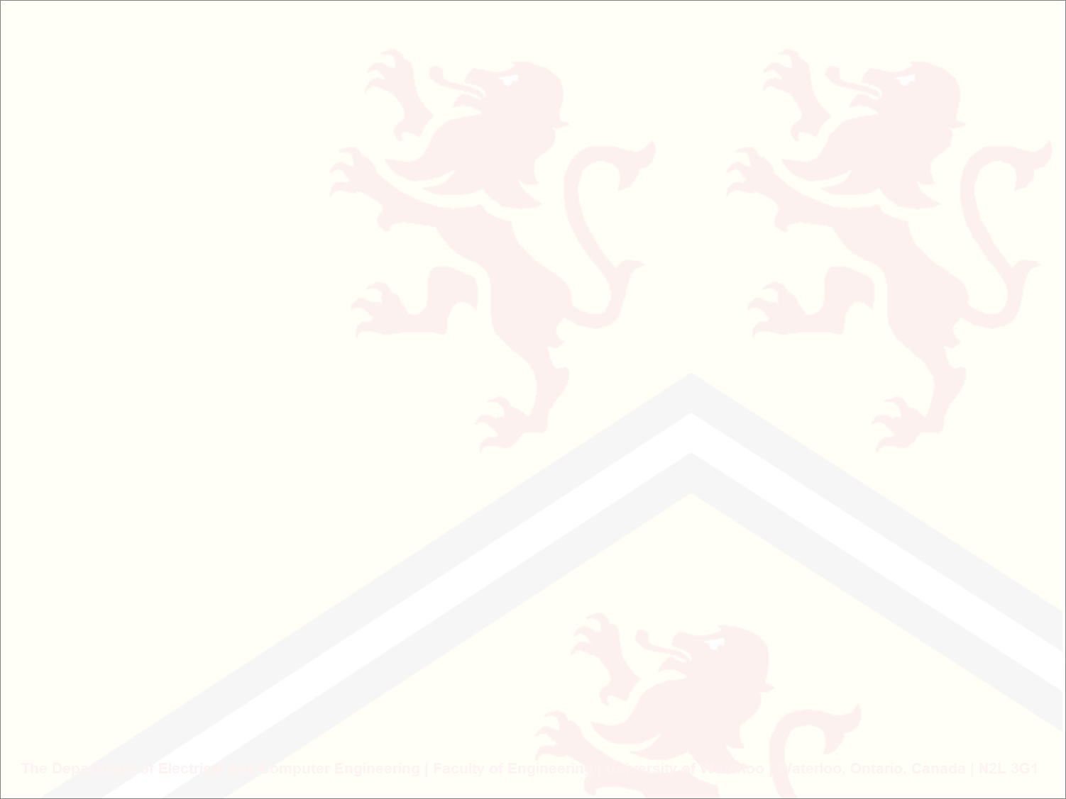 As an example of a background, consider the default ECE background shown in Figure 2. This is used by departmental talks for undergraduate students. It is the shield of the University with sufficient tint to blend it into the background. While this is an appropriate background for a departmental welcome, it is, however, still, an inappropriate background for a technical presentation: the background, while subtle would still distract the audience and it would be difficult to determine when and how the background could interfere with the content on the slides. Such a background would, unfortunately tire the audience if used in a presentation meant to either persuade or inform the audience.