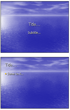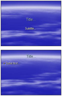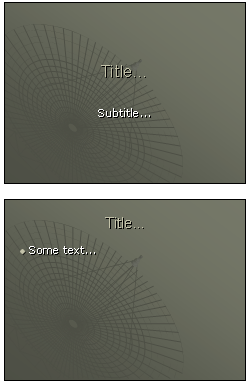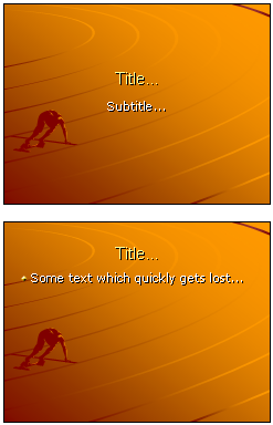 PowerPoint comes with a number of default backgrounds, as shown in Figure 1. The first is exceptionally familiar while the reader may suspect that the second will become very frustrating very quickly for technical presentations. The third and fourth defaults have the interesting property that the title or text blends with the background. The fifth and sixth have titles which are similar in shade to the background. None of these would be acceptable backgrounds for technical presentations and simply because a background is shipped with a product does not imply that it is automatically a good design.