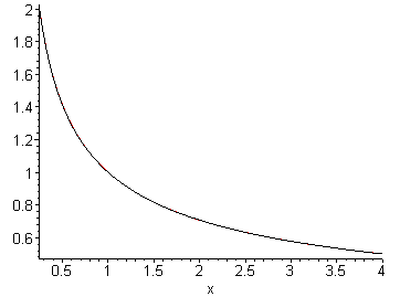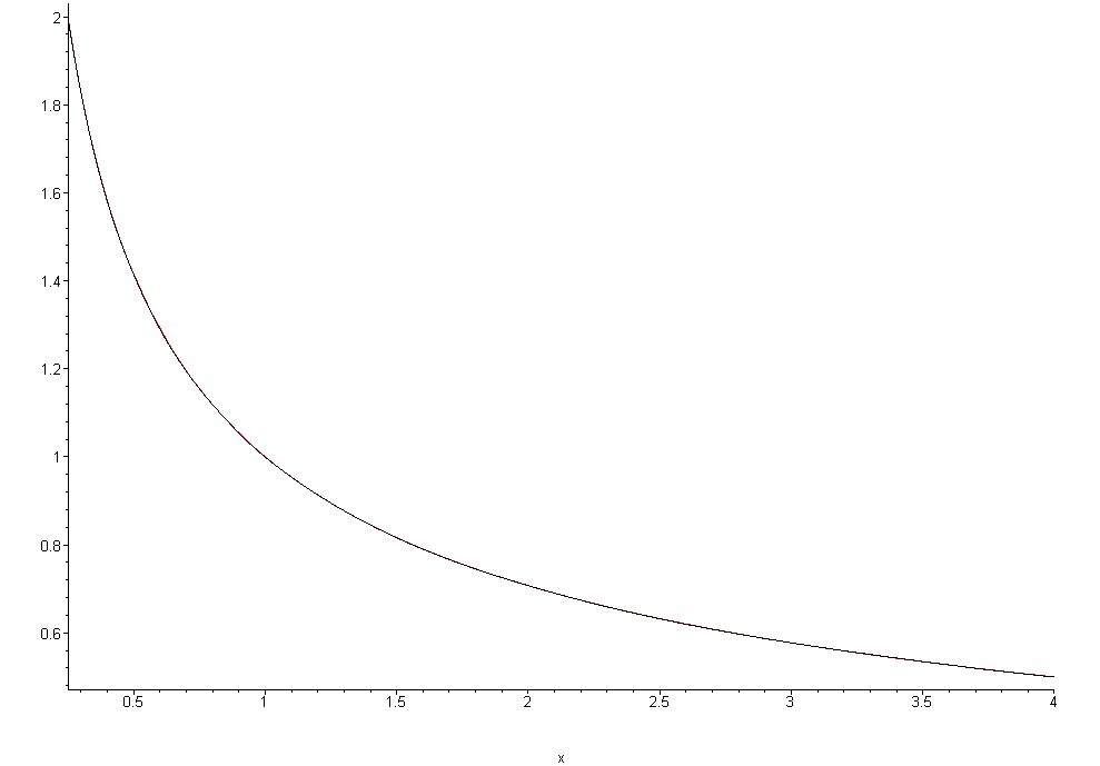 Figure 13. A plot of 1/√x and inv_sqrt(x) on [0.25, 4].