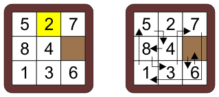 Figure 5. The solution to the eight-puzzle and a permutation of the tiles.