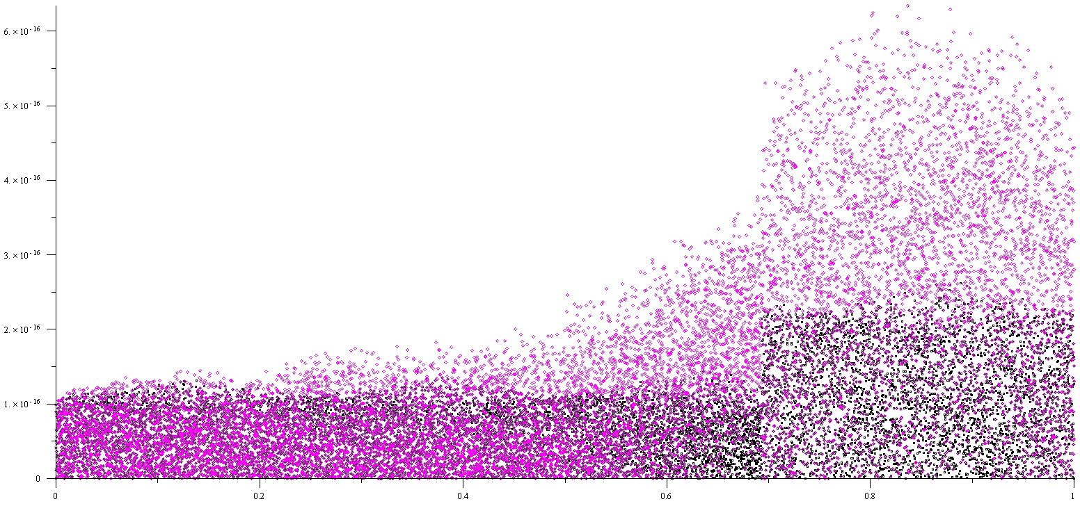 Figure 11 shows the errors when evaluating this expanded polynomial at points on the interval