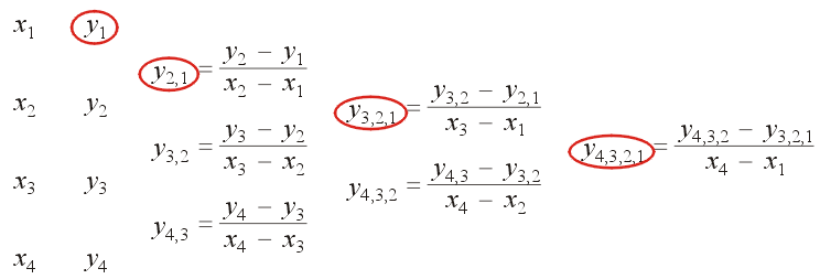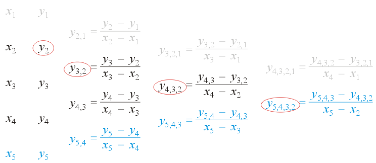 Figure 3. Calculating the Newton polynomial coefficients in a single