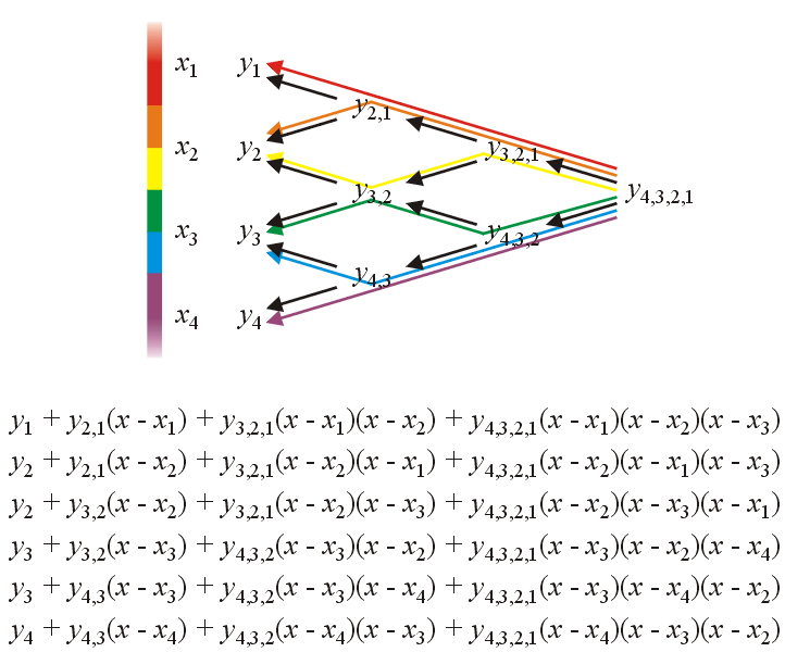 Figure 1. The definition of the Newton polynomial coefficients and the