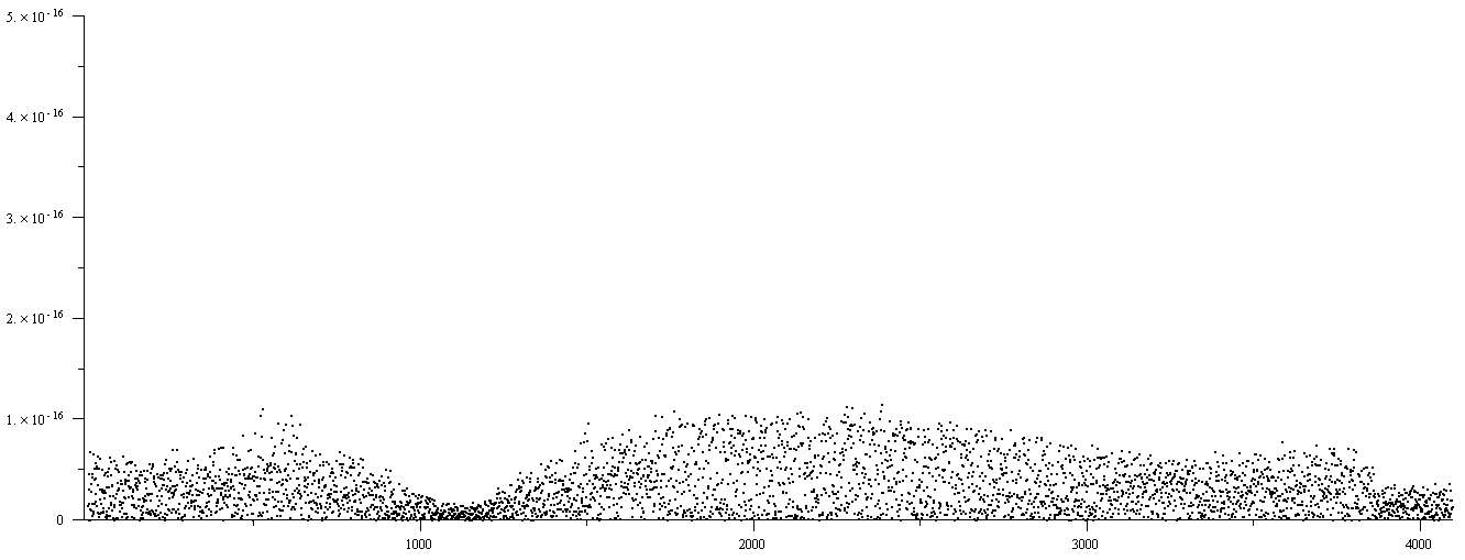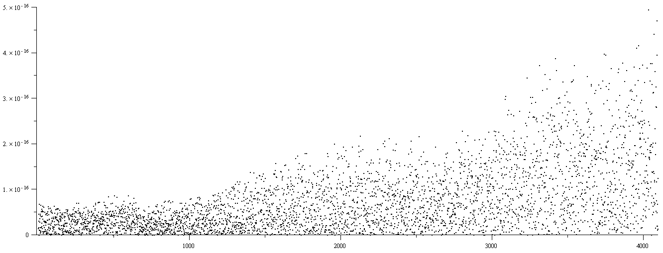 Figure 8. The absolute error of evaluating the optimal Newton polynomial for each point.