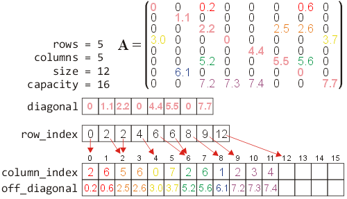 Figure 1. The sparse-matrix representation of an 8×8 matrix.
