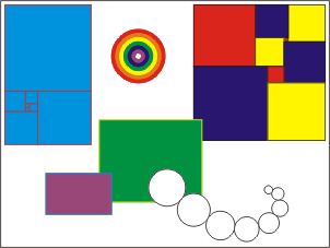 To give a illustration, consider Figure 7 which is comprised of rectangles and circles, each with various sizes, shapes, and colours. Each shape has a border as well as an interior, and the border colour may be different from the interior colour.
