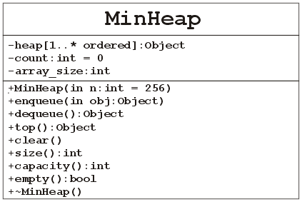 Figure 1. A UML Class Diagram of the MinHeap class.