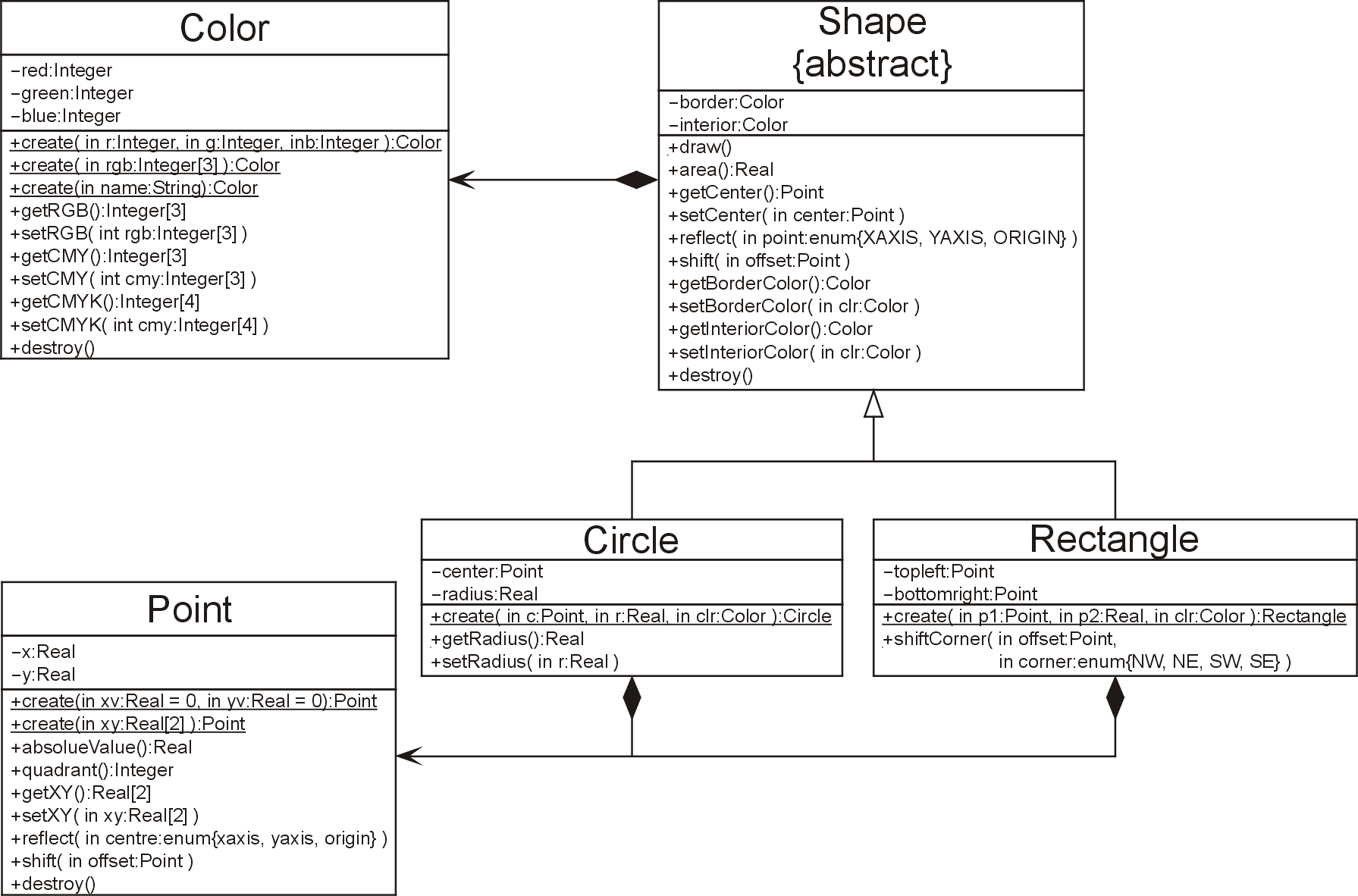 Figure 8. The association between the Color, Point, Shape, Circle, and Rectangle classes (click to enlarge).