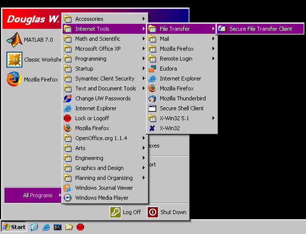 To use sftp, or secure file-transfer protocol from, for example, Nexus, you can access sftp through the Start menu as shown in Figure 1.