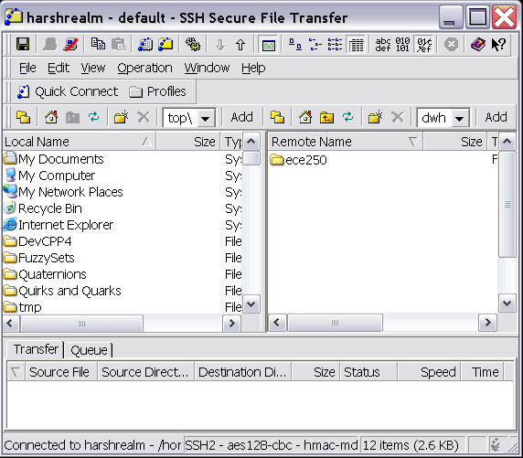 Once you have connected, you will be prompted to give the current Host-Name—User-Name pair a Profile name which you will be able to access under Profiles (as opposed to always using Quick Connect). Pick a name like ECE Unix ftp.