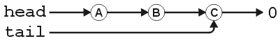 This class stores a finite list of n (zero or more) elements stored in singly-linked nodes. If there are zero elements in the list, the list is said to be empty. Each element is stored in an instance of the SingleNode<Object> class. If the list is empty, the head and tail pointers are assigned 0. Otherwise, the head pointer points to the first node, the tail pointer points to the nth node, the next pointer of the ith node (1 ≤ i < n) points to the (i + 1)st node, and the next pointer of the nth is assigned 0.