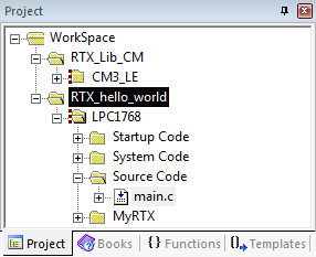 Certain files can be marked up so as to be edited not by changing the source code, but by using an interactive configuration window. One such file is RTX_Conf_CM.c, which allows the user to select the Configuration Wizard by selecting the appropriate tab at the bottom of the soruce file, as shown in Figure 5.