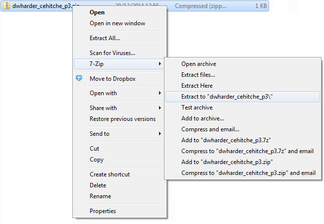 Figure 2. Using 7zip to extract files from a zip file (shown in Windows).
