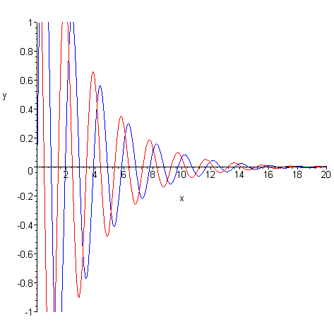 [> plot( cos(3.23*x)*exp(-0.323*x), x = 0..20 );