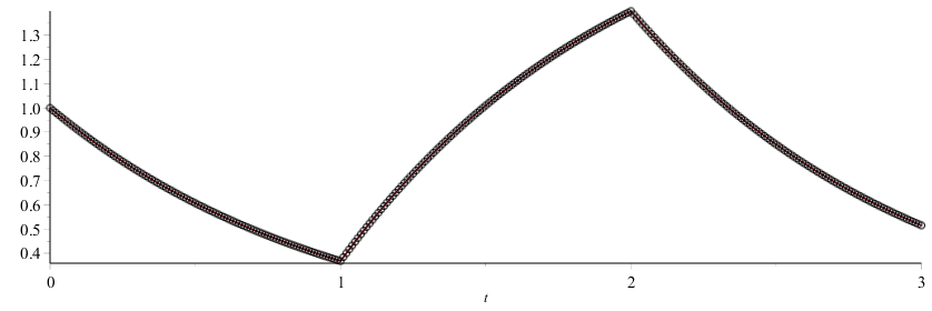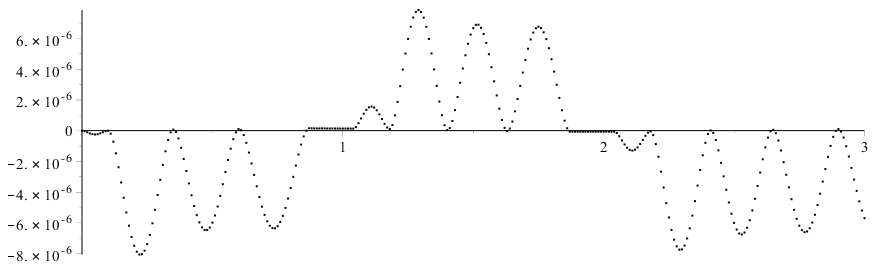 Figure 2. The error of each value of the approximation at the points $t = 0.01k$ for $k = 0, ..., 300$.