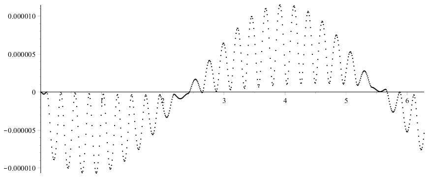 Figure 4. The errors of the approximations of the solution to the sinusoidal initial-value problem.