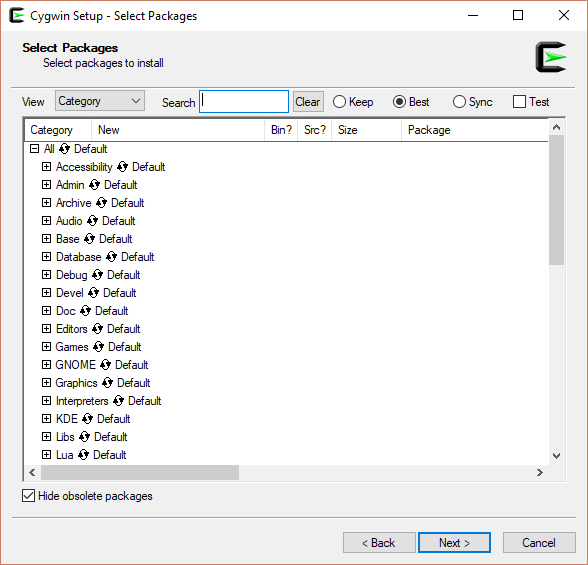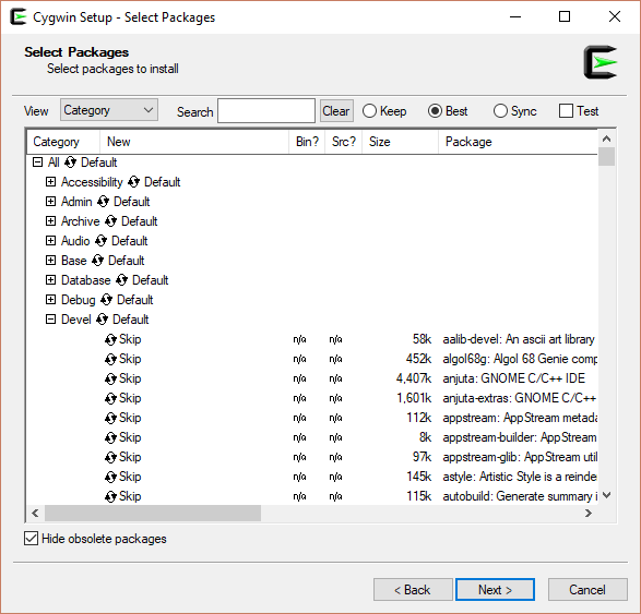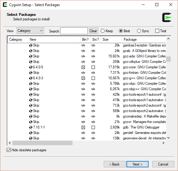 For users of Microsoft Windows, we will have you install Cygwin, a unixesque interface for Windows. First, visit the cygwin.com, and from the left-hand menu Install Cygwin. You may select either the 64-bit or the 32-bit versions, based on your versions of Eclipse and Java.