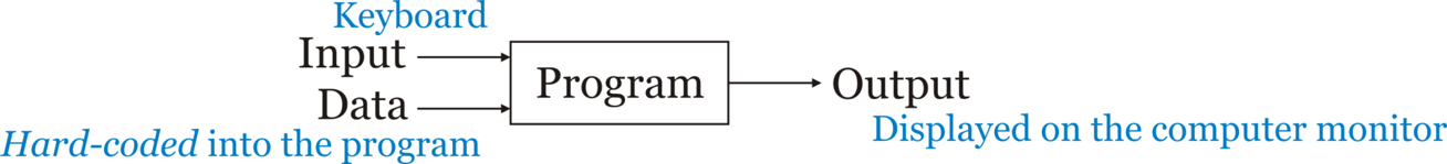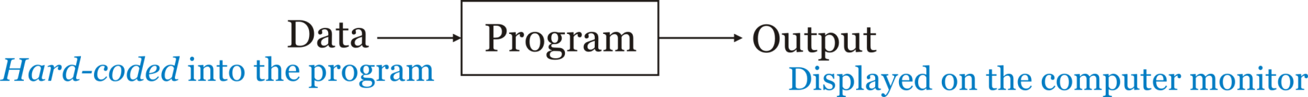 In all these cases, there must be information, or data, to manipulate. Some of this data can be hard-coded into the program instructions, and the result is displayed to a computer monitor.