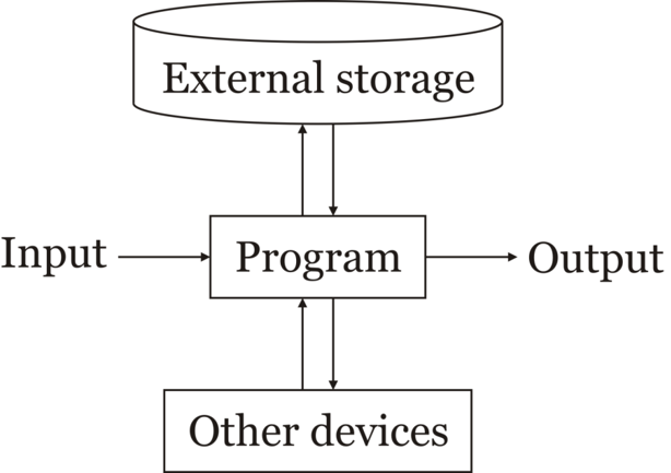 In general, there are many different means by which a program can either acquire to process or send processed data. We can generalize such devices through one of four descriptions: