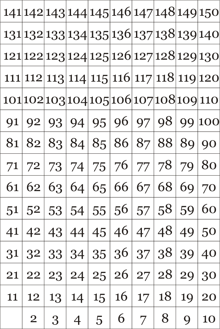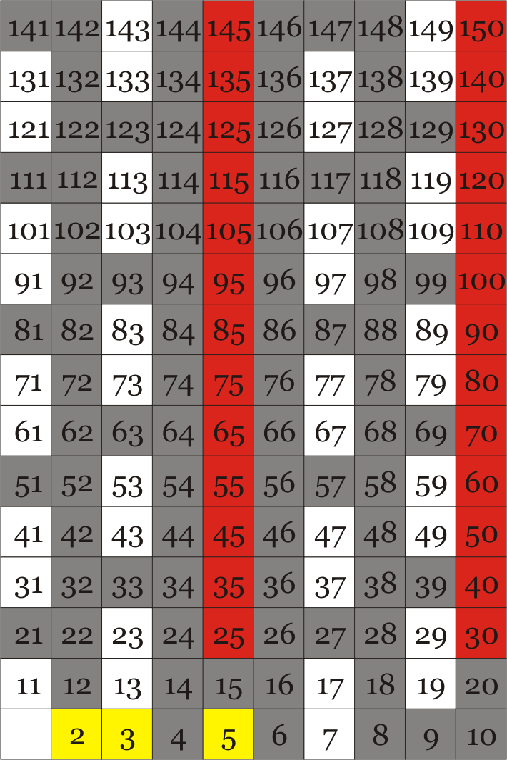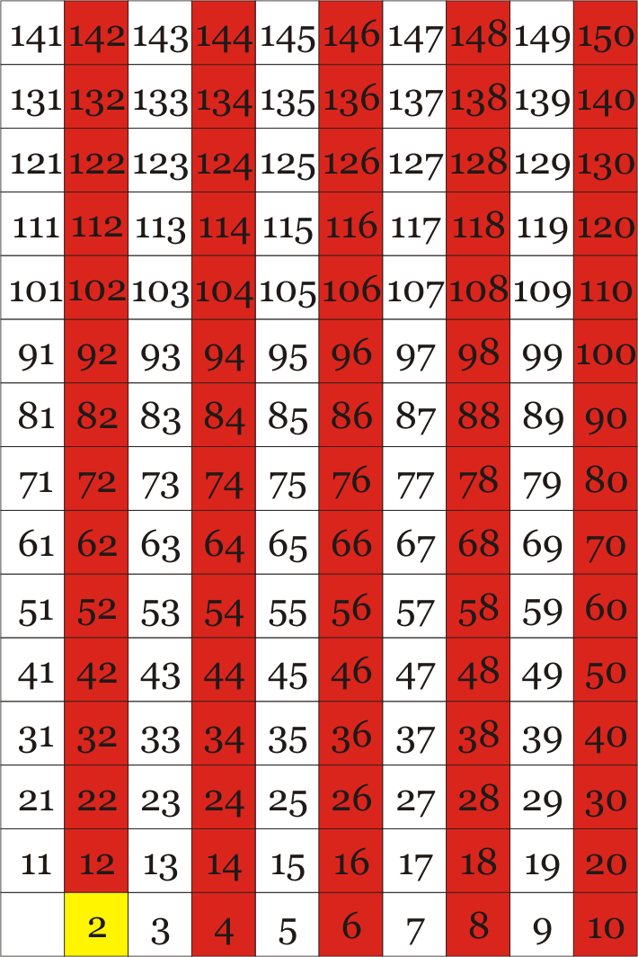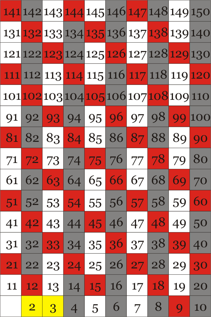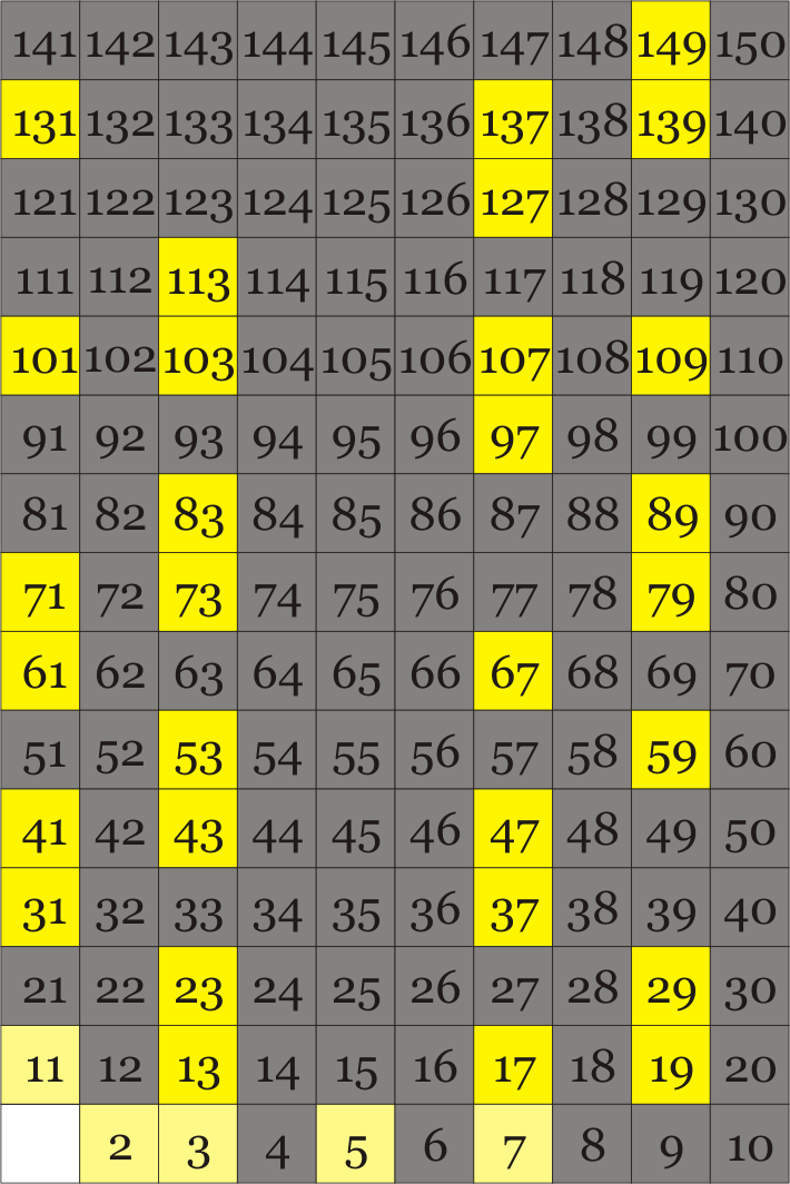 Figure 1. The numbers from $2$ up to $N = 150$.